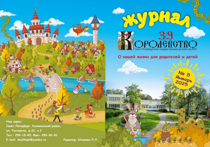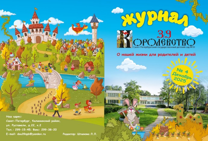 Уважаемые посетители! Мы представляем вам электронную версию нашего ежемесячного журнала "3/9 Королевство" Первый номер журнала вышел в октябре 2014 года Этот журнал о нашей жизни для родителей и детей. Статьи в журнал пишут педагоги детского сада Нам очень хочется, чтобы Вы лучше узнали о нас и о нашей жизни в стенах детского сада, порадовались успехам детей, смогли еще раз вспомнить, а, может, и просто узнать о тех интересных событиях, которые прошли в нашем "3/9 КОРОЛЕВСТВЕ" Приятного чтения!